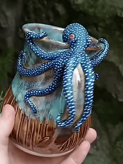 Unique 3D Octopus Design: This handcrafted ceramic coffee mug features a unique 3D octopus design. The lifelike octopus sculpture is paired with an exquisite tentacle handle. The deep ocean glaze and mottled texture create a captivating underwater world atmosphere, making it an ideal choice for ocean-themed decor lovers and everyday coffee rituals.