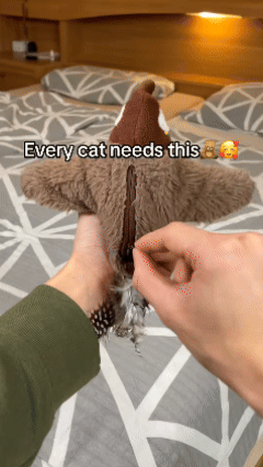 This sparrow-shaped cat toy has a built-in motion sensor. When your cat touches it, its wings flap like a real sparrow, stimulating their interest and encouraging them to play and move around. This is a great way to keep your cat entertained when you're not home. Once playtime begins, the toy will chirp. These sounds will attract your cat to flap, nibble, chew, and chase, making your feline friend's playtime even more exciting.